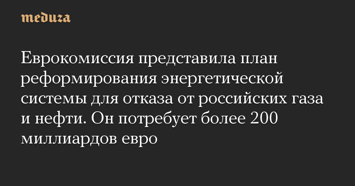 Еврокомиссия представила план реформирования энергетической системы для отказа от российских газа и нефти. Он потребует более 200 миллиардов евро