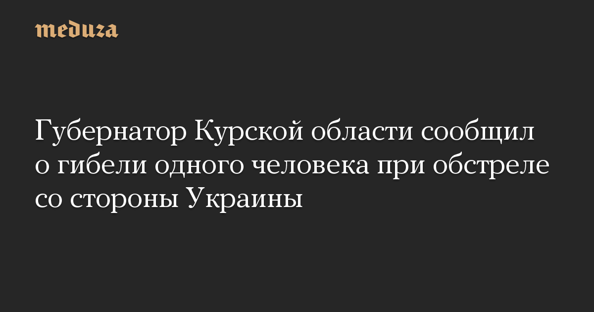 Губернатор Курской области сообщил о гибели одного человека при обстреле со стороны Украины