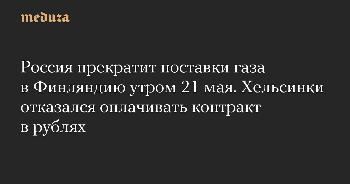 Россия прекратит поставки газа в Финляндию утром 21 мая. Хельсинки отказался оплачивать контракт в рублях