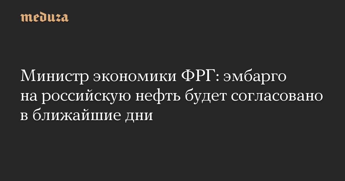 Министр экономики ФРГ: эмбарго на российскую нефть будет согласовано в ближайшие дни