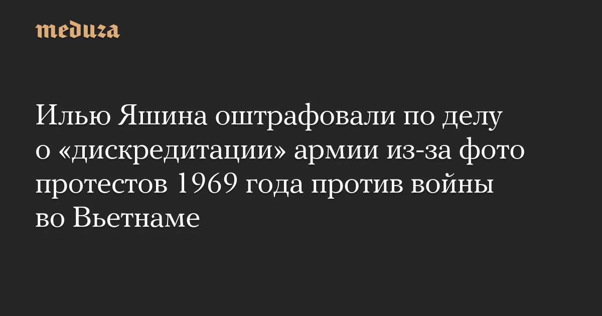 Илью Яшина оштрафовали по делу о «дискредитации» армии из-за фото протестов 1969 года против войны во Вьетнаме
