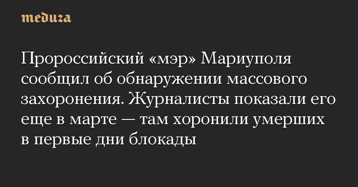 Пророссийский «мэр» Мариуполя сообщил об обнаружении массового захоронения. Журналисты показали его еще в марте — там хоронили умерших в первые дни блокады