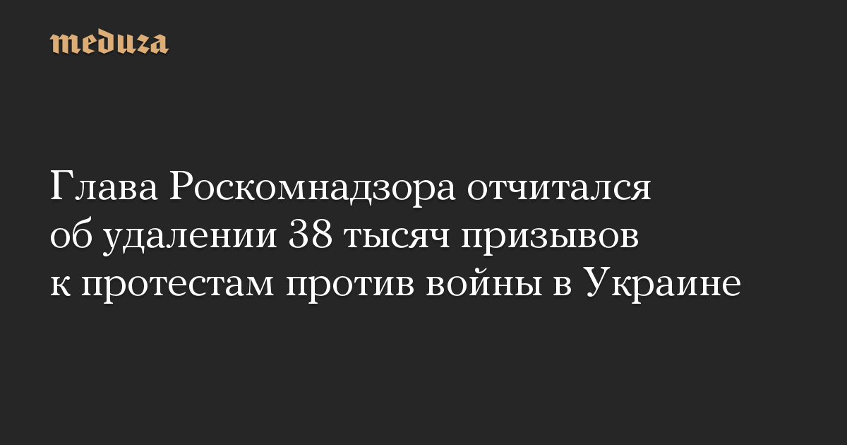 Глава Роскомнадзора отчитался об удалении 38 тысяч призывов к протестам против войны в Украине