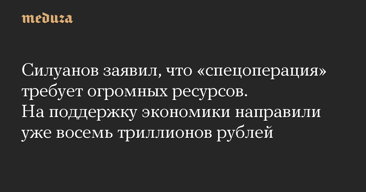 Силуанов заявил, что «спецоперация» требует огромных ресурсов. На поддержку экономики направили уже восемь триллионов рублей