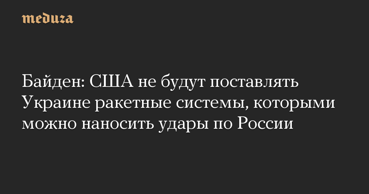 Байден: США не будут поставлять Украине ракетные системы, которыми можно наносить удары по России
