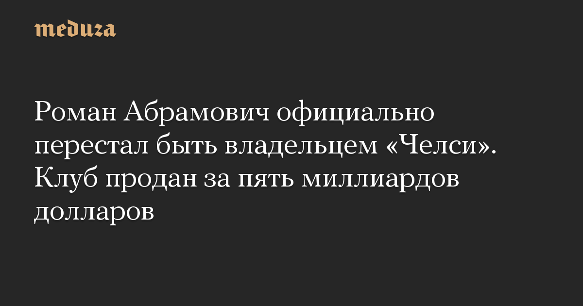 Роман Абрамович официально перестал быть владельцем «Челси». Клуб продан за пять миллиардов долларов