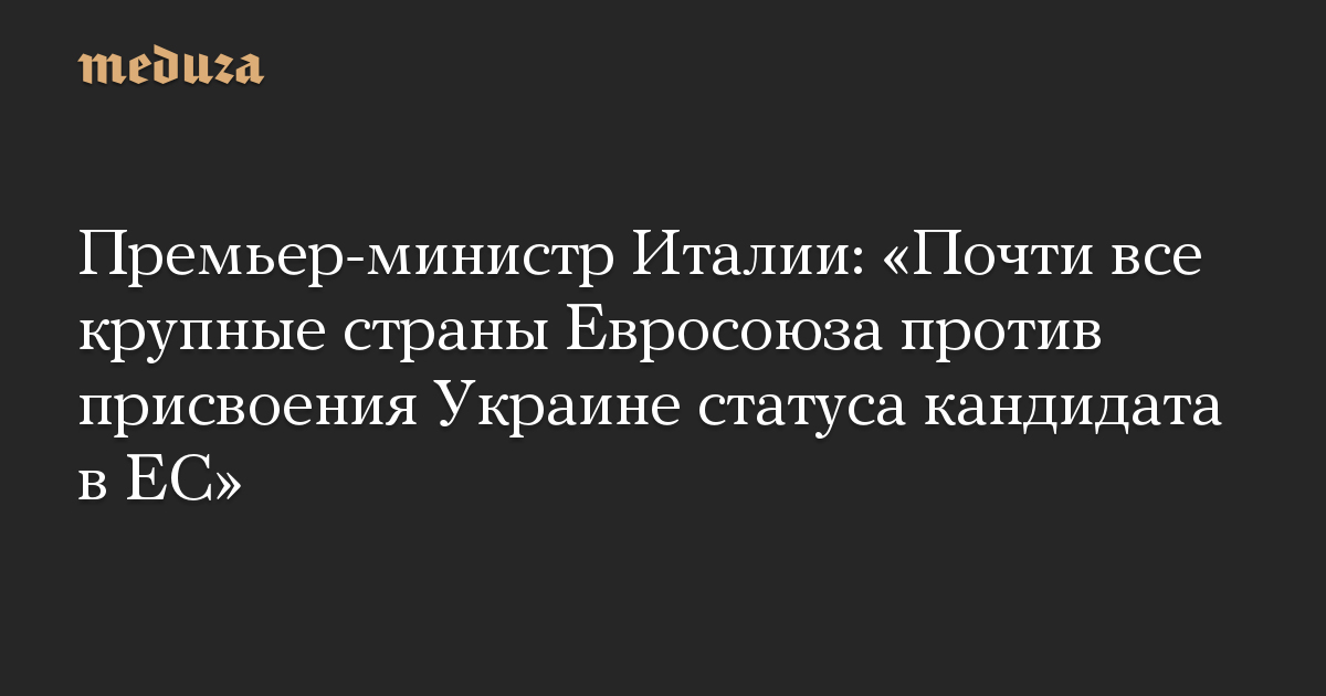 Премьер-министр Италии: «Почти все крупные страны Евросоюза против присвоения Украине статуса кандидата в ЕС»