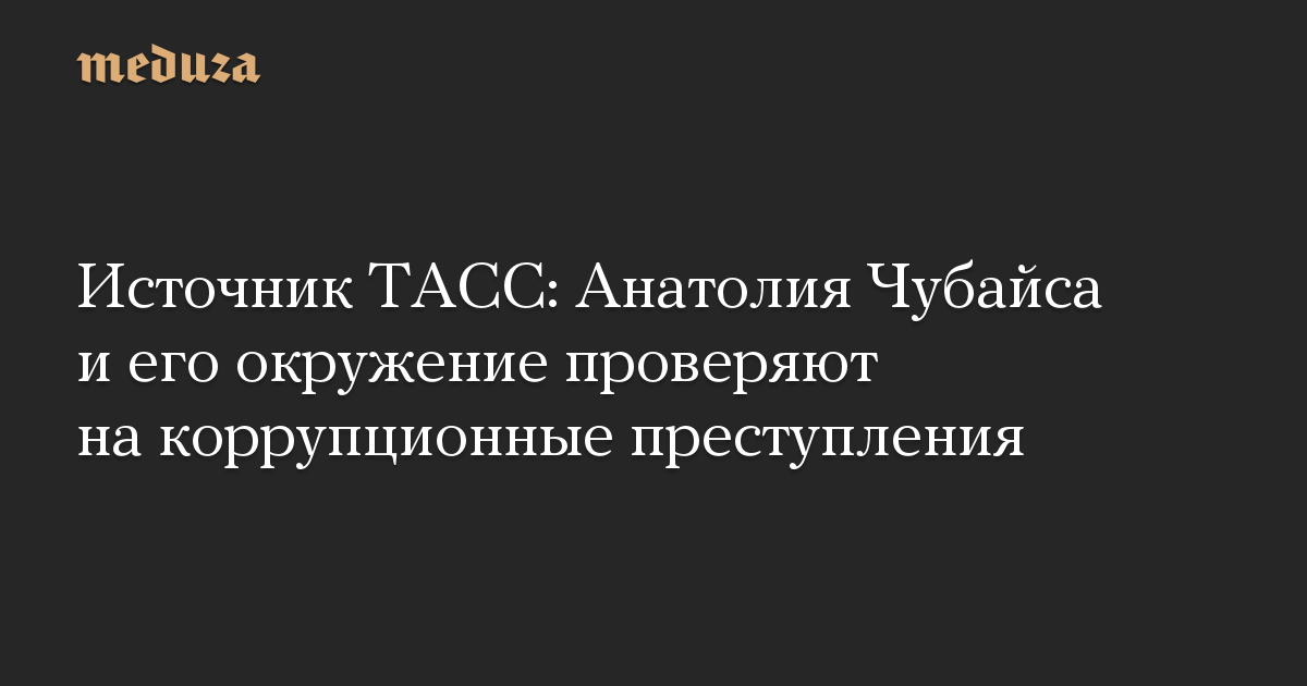 Сотрудники правоохранительных органов проверяют бывшего главу «Роснано» Анатолия Чубайса и его окружение на предмет коррупции, сообщает ТАСС со ссылкой на источник.