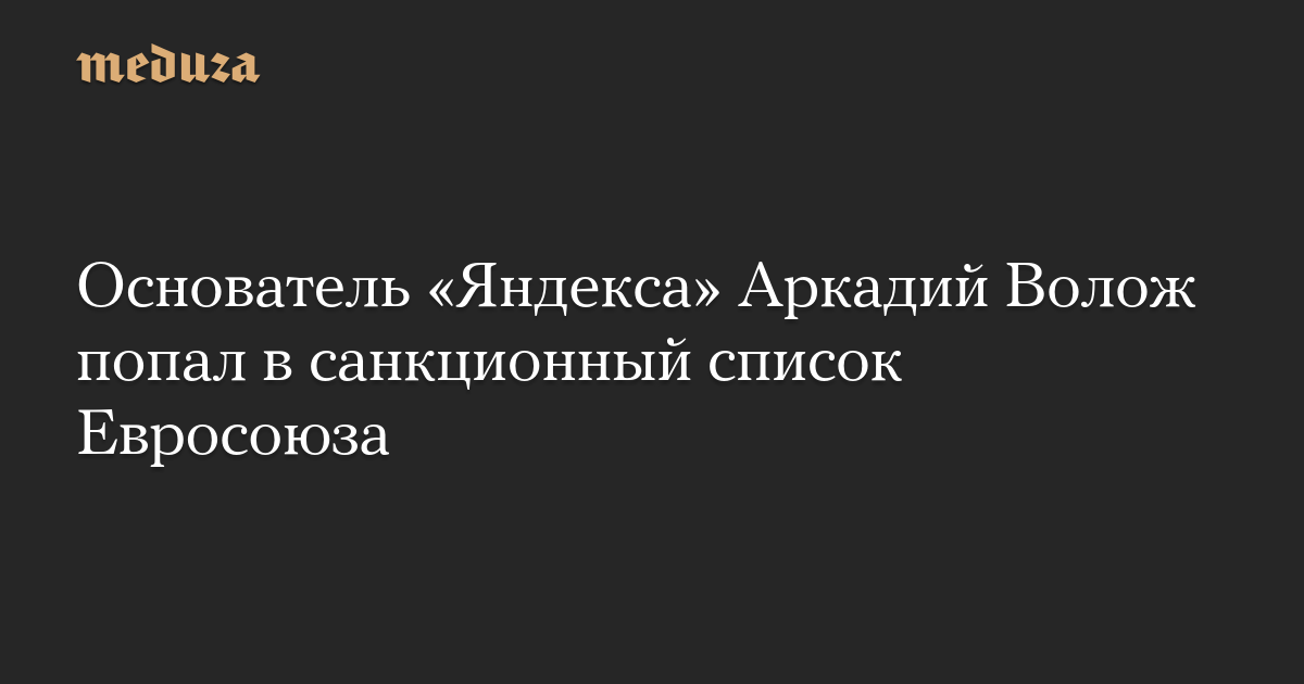 Евросоюз внес в санкционные списки основателя компании «Яндекс» Аркадия Воложа в рамках шестого пакета санкций против России.