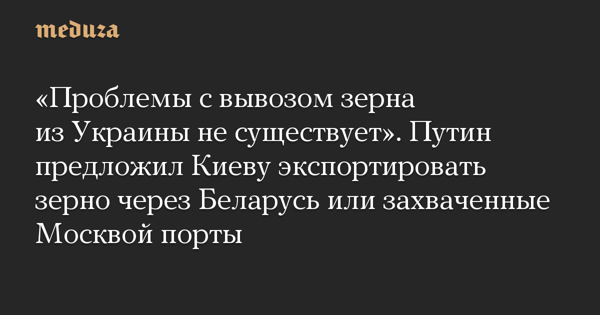 «Проблемы с вывозом зерна из Украины не существует». Путин предложил Киеву экспортировать зерно через Беларусь или захваченные Москвой порты