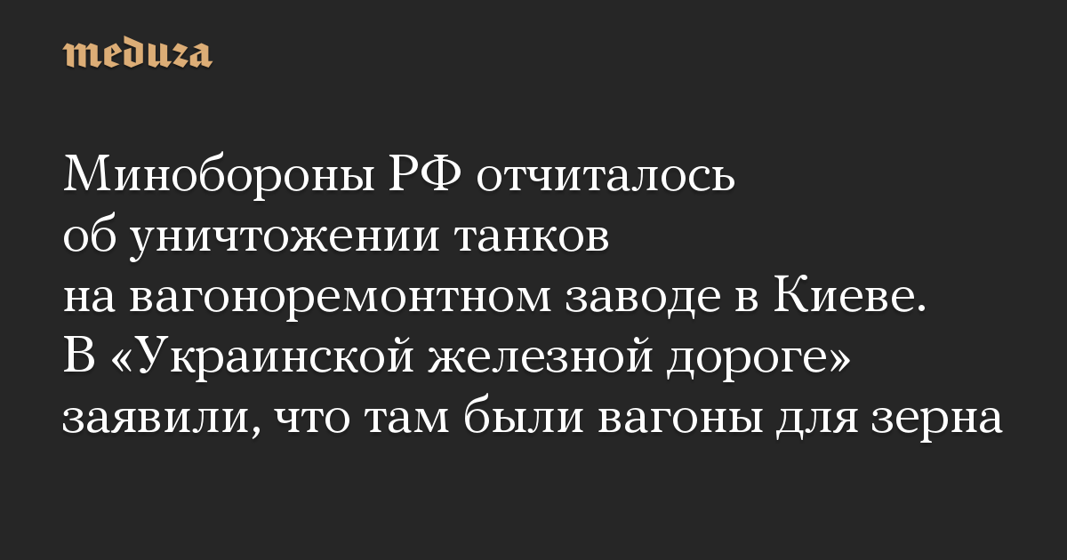 Минобороны РФ отчиталось об уничтожении танков на вагоноремонтном заводе в Киеве. В «Украинской железной дороге» заявили, что там были вагоны для зерна
