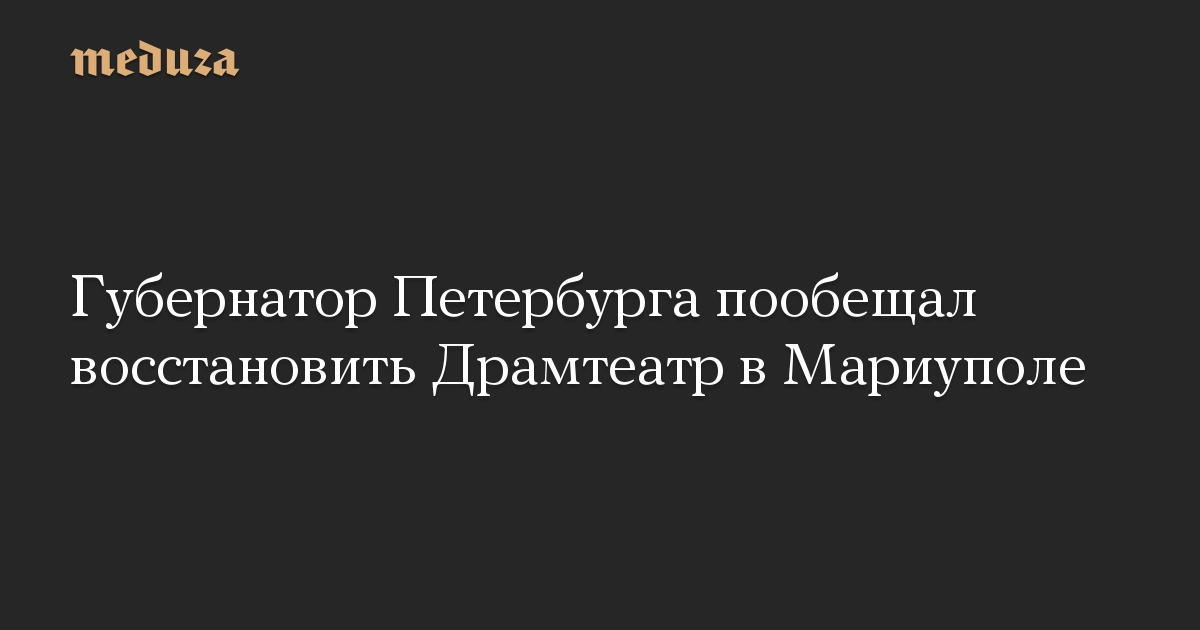 Губернатор Петербурга пообещал восстановить Драмтеатр в Мариуполе