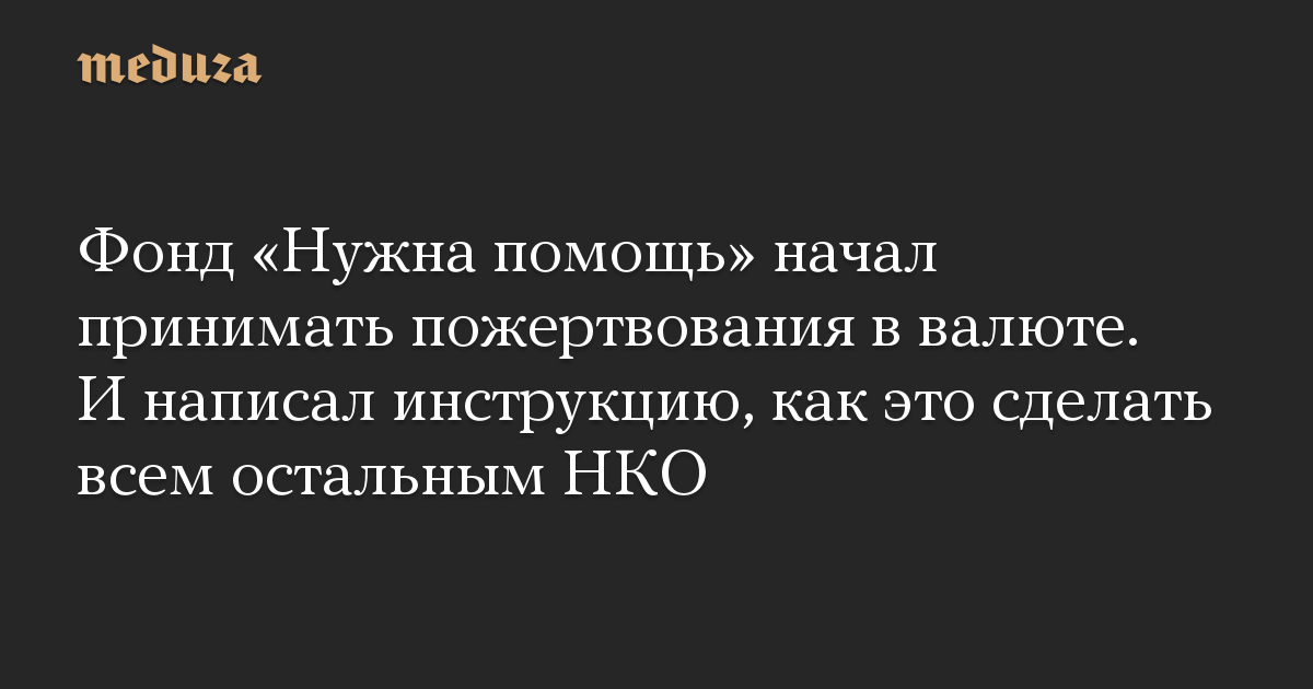 Фонд «Нужна помощь» начал принимать пожертвования в валюте. И написал инструкцию, как это сделать всем остальным НКО