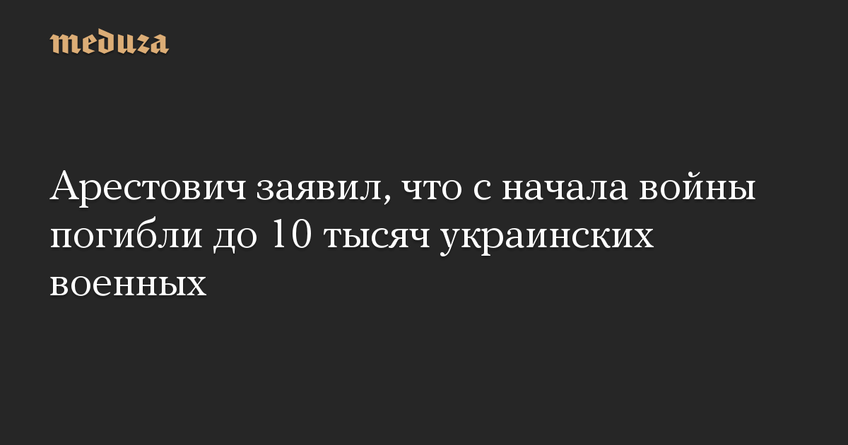 Арестович заявил, что с начала войны погибли до 10 тысяч украинских военных