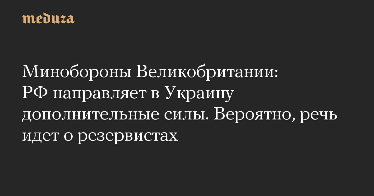 Минобороны Великобритании: РФ направляет в Украину дополнительные силы. Вероятно, речь идет о резервистах