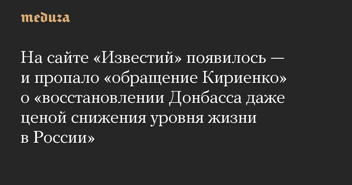 На сайте «Известий» появилось — и пропало «обращение Кириенко» о «восстановлении Донбасса даже ценой снижения уровня жизни в России»