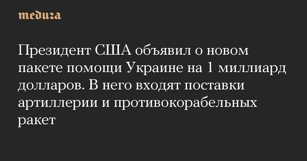 Президент США объявил о новом пакете помощи Украине на 1 миллиард долларов. В него входят поставки артиллерии и противокорабельных ракет