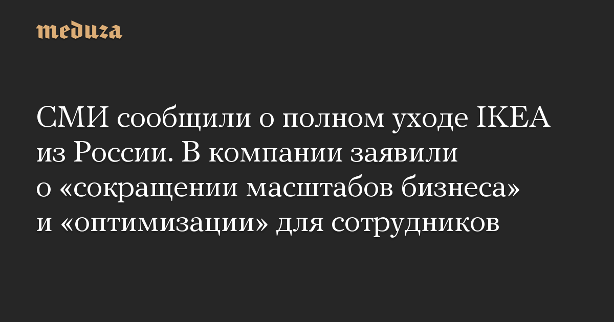 СМИ сообщили о полном уходе IKEA из России. В компании заявили о «сокращении масштабов бизнеса» и «оптимизации» для сотрудников