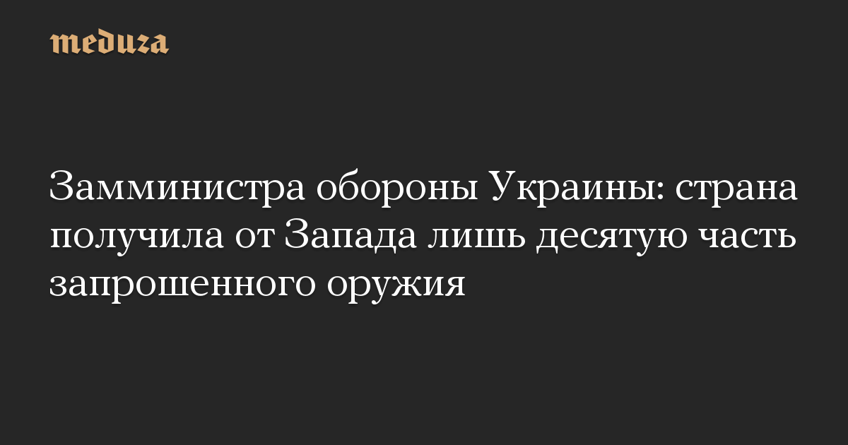 Замминистра обороны Украины: страна получила от Запада лишь десятую часть запрошенного оружия