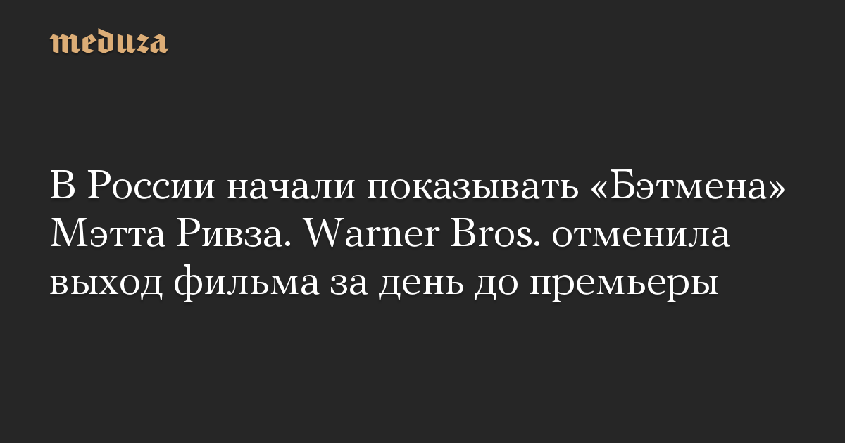 В России начали показывать «Бэтмена» Мэтта Ривза. Warner Bros. отменила выход фильма за день до премьеры