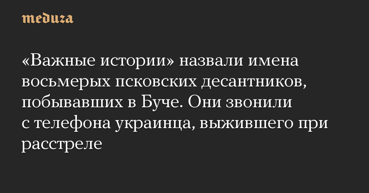 «Важные истории» назвали имена восьмерых псковских десантников, побывавших в Буче. Они звонили с телефона украинца, выжившего при расстреле