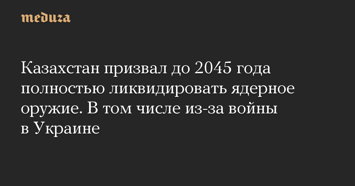 Казахстан призвал до 2045 года полностью ликвидировать ядерное оружие. В том числе из-за войны в Украине
