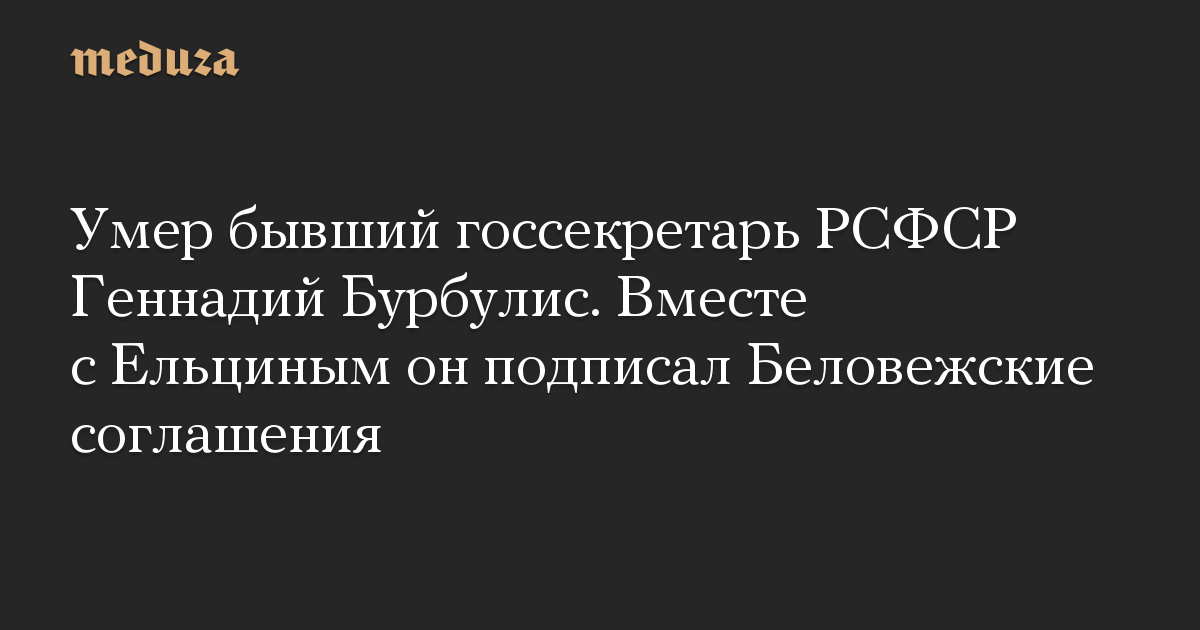 Умер бывший госсекретарь РСФСР Геннадий Бурбулис. Вместе с Ельциным он подписал Беловежские соглашения
