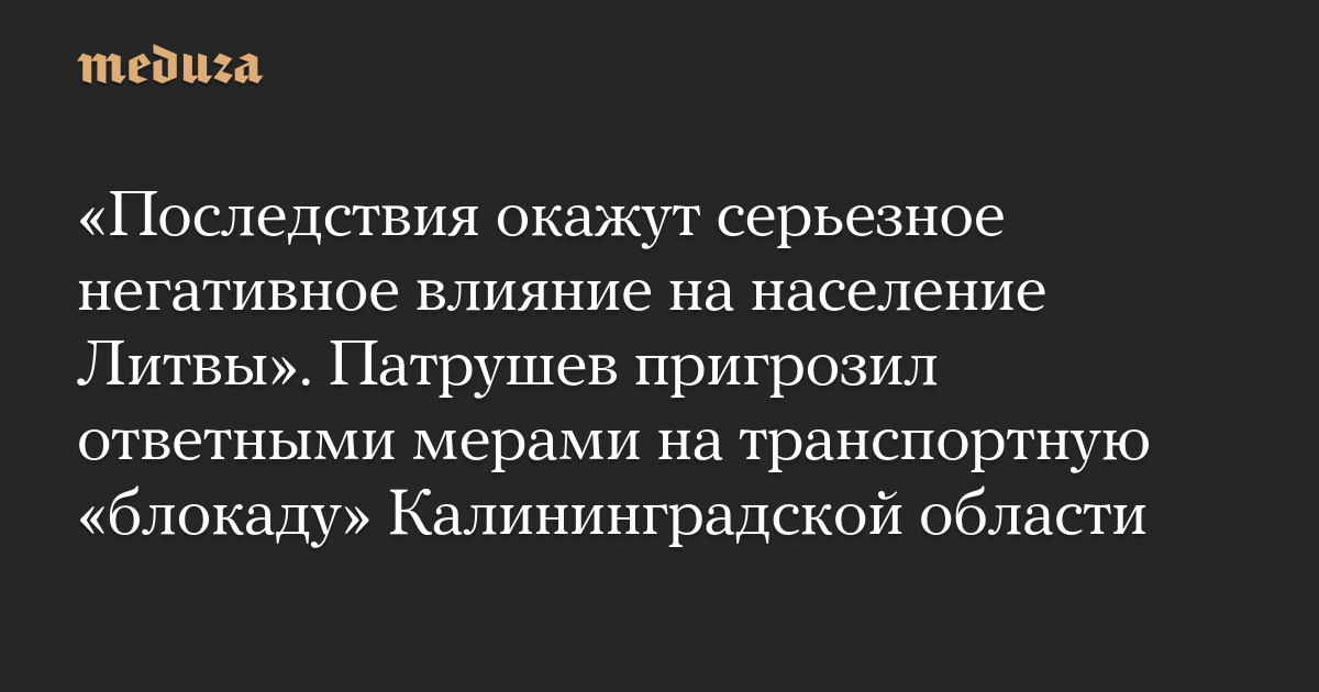 «Последствия окажут серьезное негативное влияние на население Литвы». Патрушев пригрозил ответными мерами на транспортную «блокаду» Калининградской области