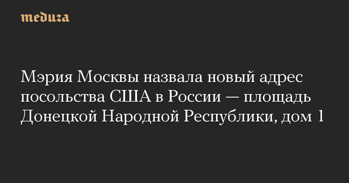 Мэрия Москвы назвала новый адрес посольства США в России — площадь Донецкой Народной Республики, дом 1
