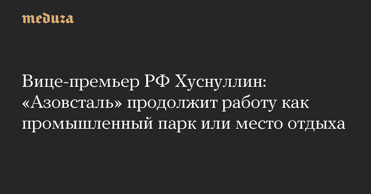 Вице-премьер РФ Хуснуллин: «Азовсталь» продолжит работу как промышленный парк или место отдыха