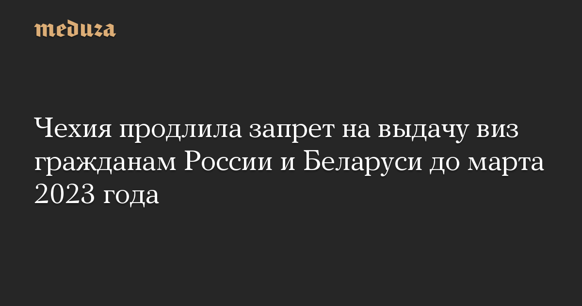 Власти Чехии продлили до конца марта 2023 года запрет на выдачу виз и видов на жительство гражданам России и Беларуси, который был введен вскоре после российского вторжения в Украину.