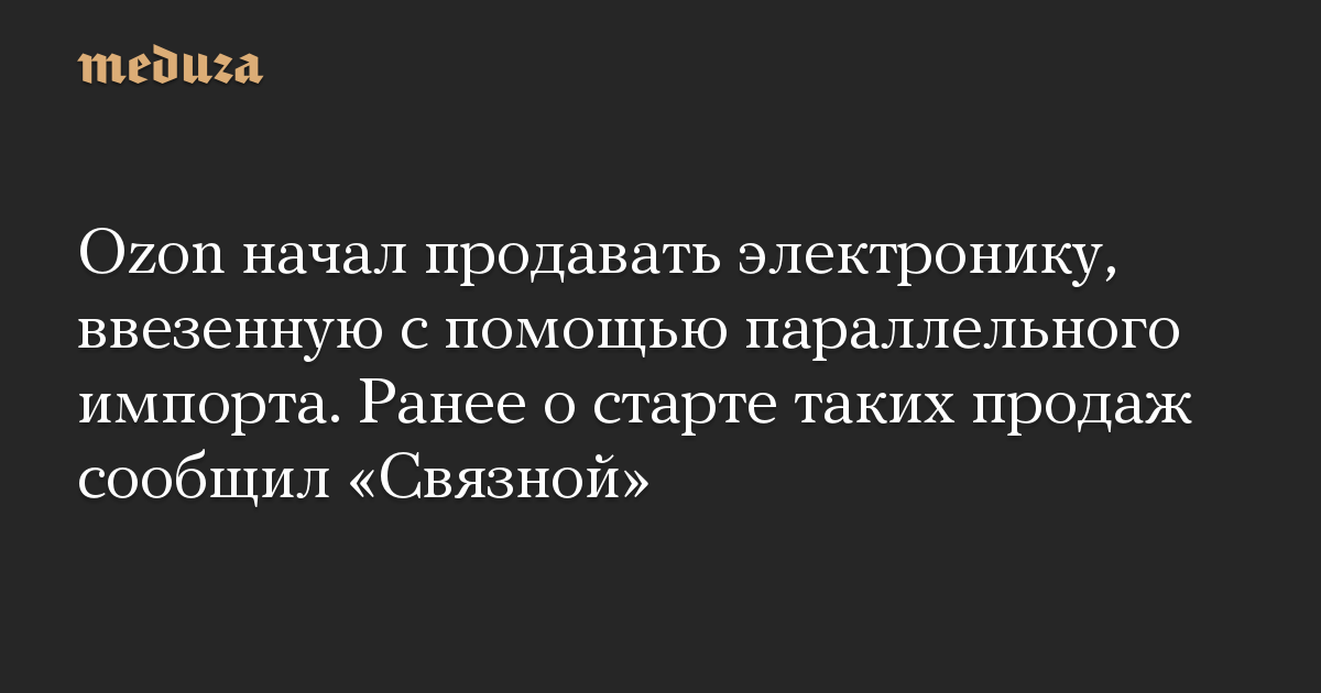 Таким образом Ozon стал второй площадкой, которая начала продажи товаров, в том числе зарубежной электроники, ввезенных по схеме параллельного импорта. 23 июня «Коммерсант» сообщил о старте продаж таких товаров в «Связном».