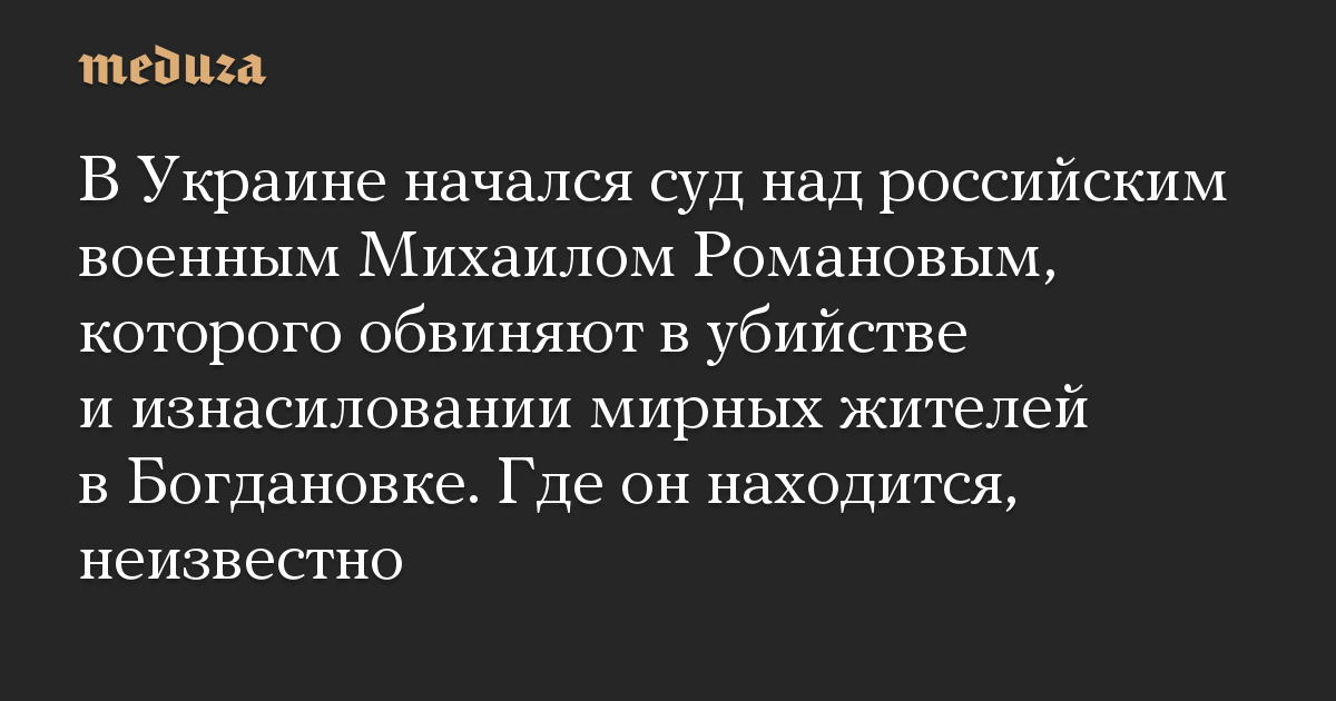 В Украине начался суд над российским военным Михаилом Романовым, которого обвиняют в убийстве и изнасиловании мирных жителей в Богдановке. Где он находится, неизвестно