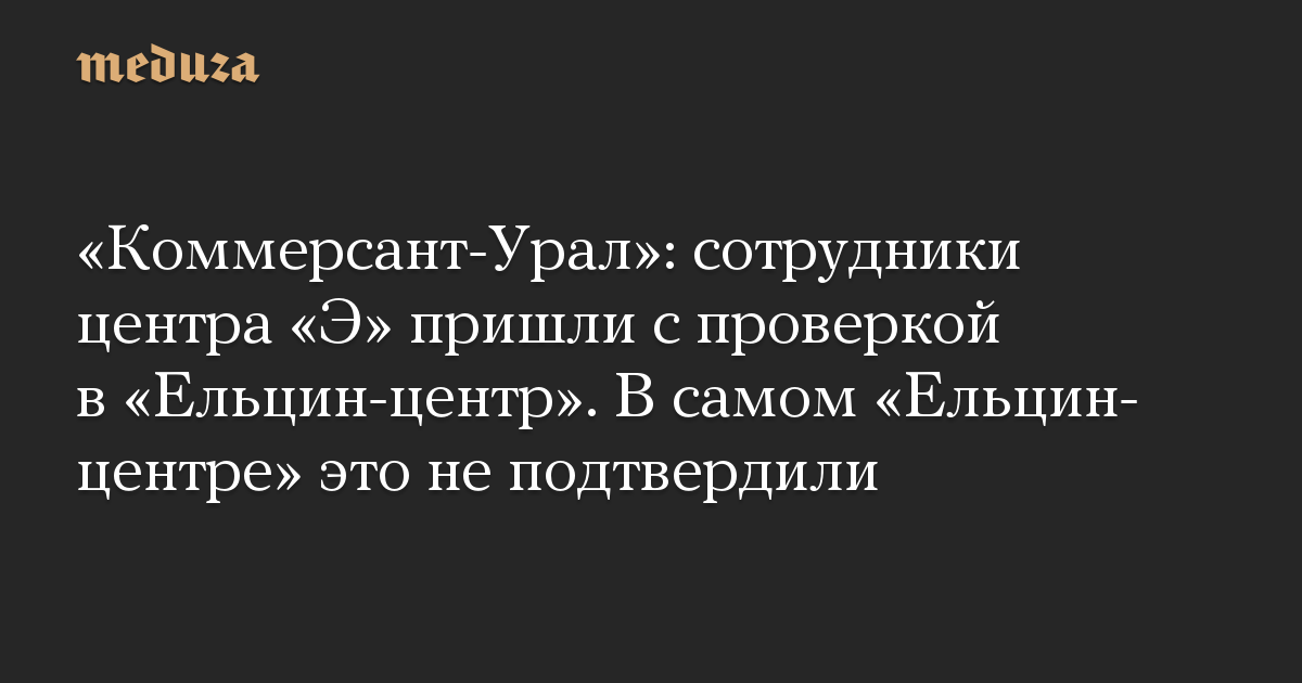 «Коммерсант-Урал»: сотрудники центра «Э» пришли с проверкой в «Ельцин-центр». В самом «Ельцин-центре» это не подтвердили