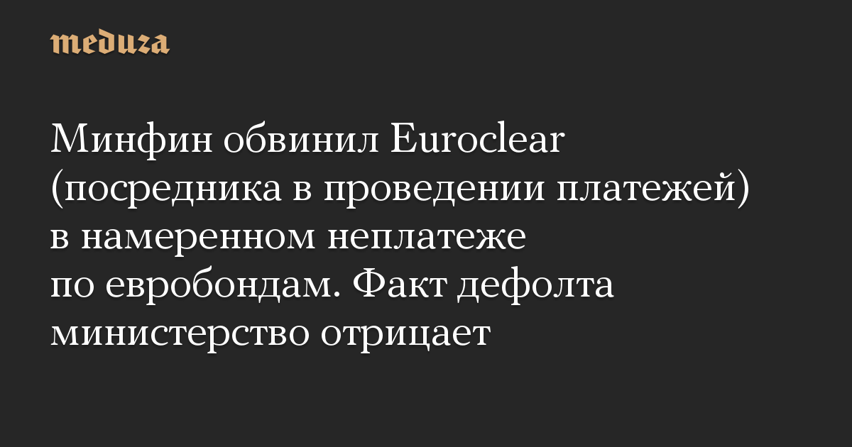 Минфин обвинил Euroclear (посредника в проведении платежей) в намеренном неплатеже по евробондам. Факт дефолта министерство отрицает