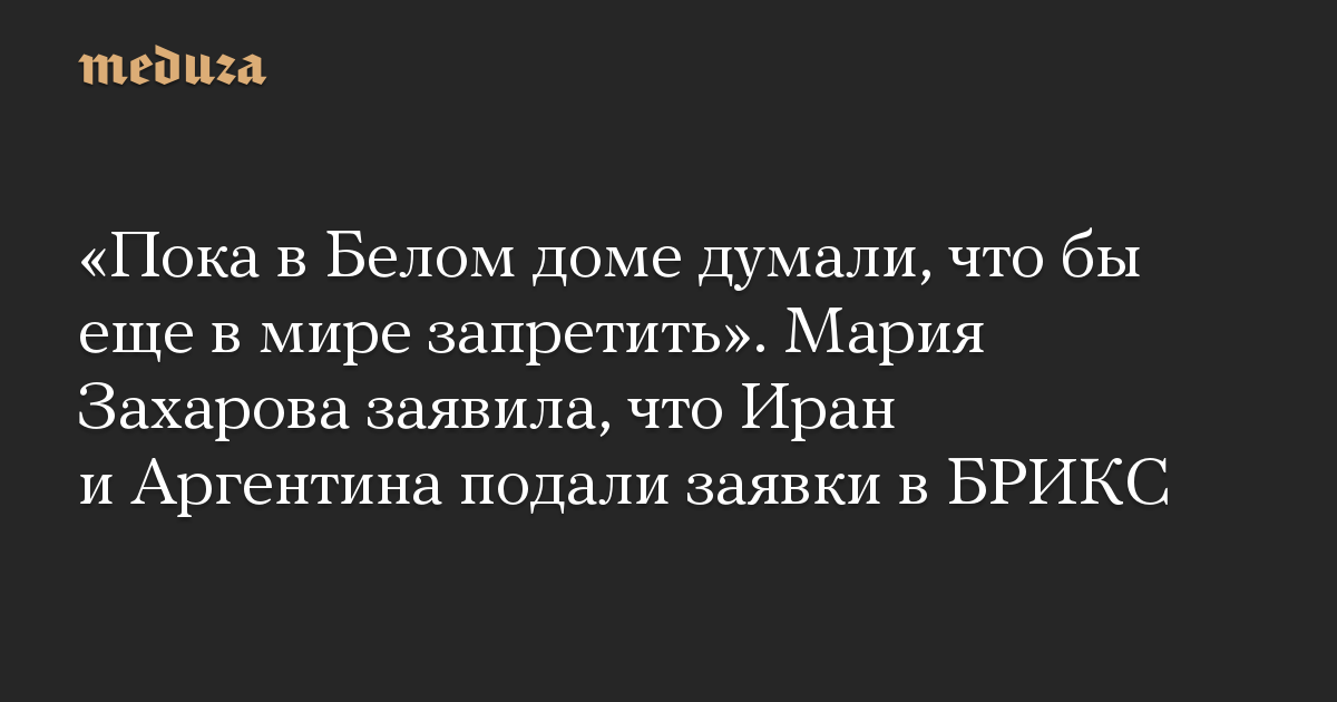 «Пока в Белом доме думали, что бы ещё в мире отключить, запретить и испортить, Аргентина и Иран подали заявки на вступление в БРИКС», — написала Захарова в своем телеграм-канале.