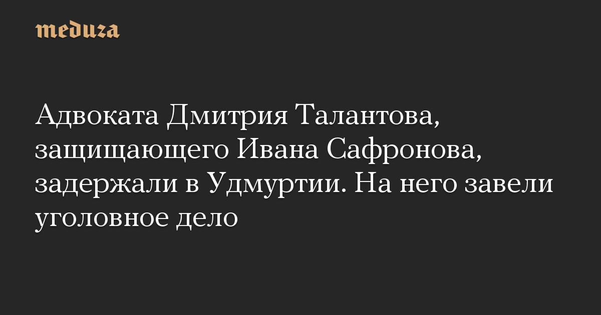 Адвоката Дмитрия Талантова, защищающего Ивана Сафронова, задержали в Удмуртии. На него завели уголовное дело