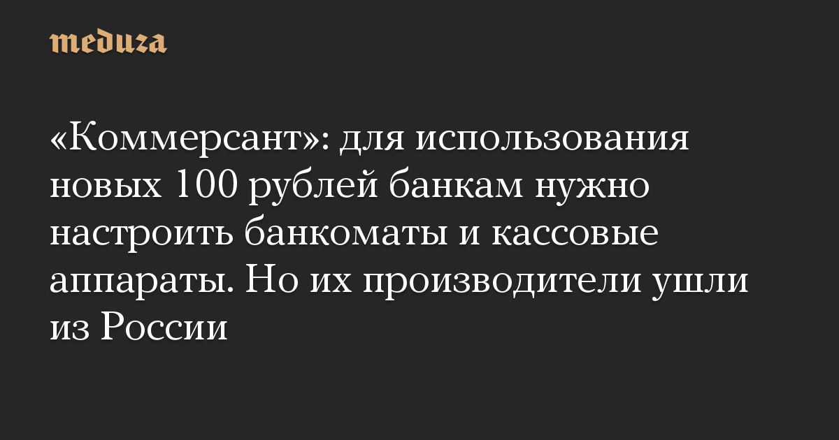 «Коммерсант»: для использования новых 100 рублей банкам нужно настроить банкоматы и кассовые аппараты. Но их производители ушли из России