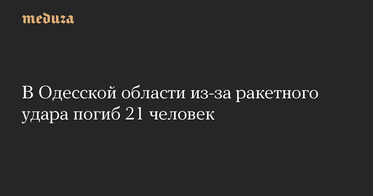 По последней информации, 21 человек, в том числе 12-летний мальчик, погибли, еще 38 человек пострадали после ракетного удара по Одесской области, сообщил, пишет «Украинская правда», спикер региональной администрации Сергей Братчук в эфире телемарафона.