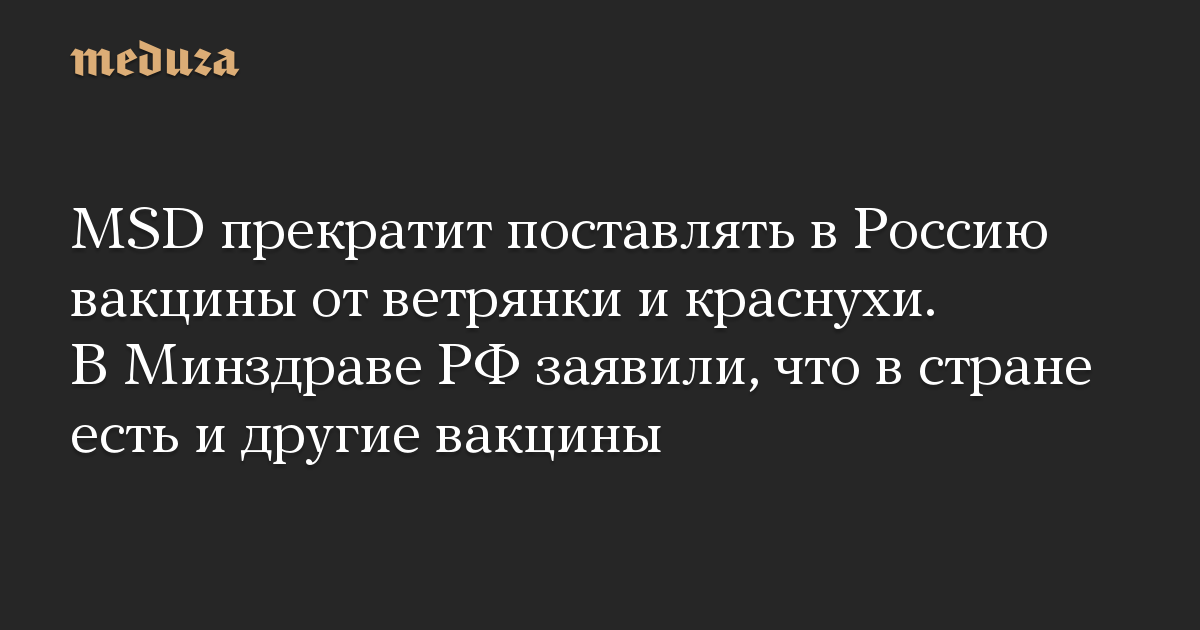 Международный биофармацевтический гигант MSD уведомил контрагентов, что перестанет поставлять в Россию вакцины от ветряной оспы («Варивакс»), а также от кори, краснухи и паротита (М-М-Р II), пишет «Коммерсант».
