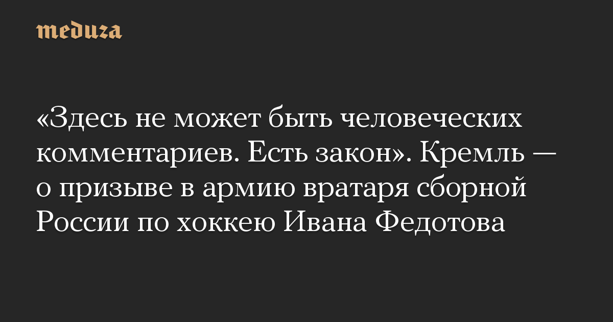 «Здесь не может быть человеческих комментариев. Есть закон». Кремль — о призыве в армию вратаря сборной России по хоккею Ивана Федотова