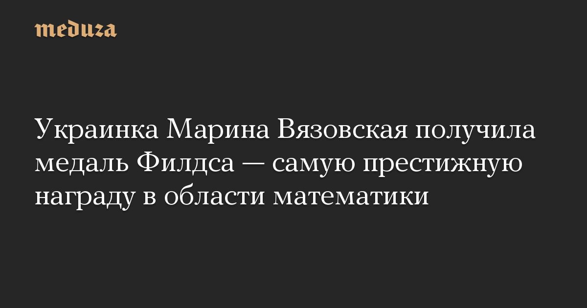 Украинка Марина Вязовская получила медаль Филдса — самую престижную награду в области математики