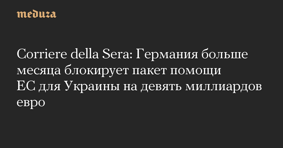 Corriere della Sera: Германия больше месяца блокирует пакет помощи ЕС для Украины на девять миллиардов евро