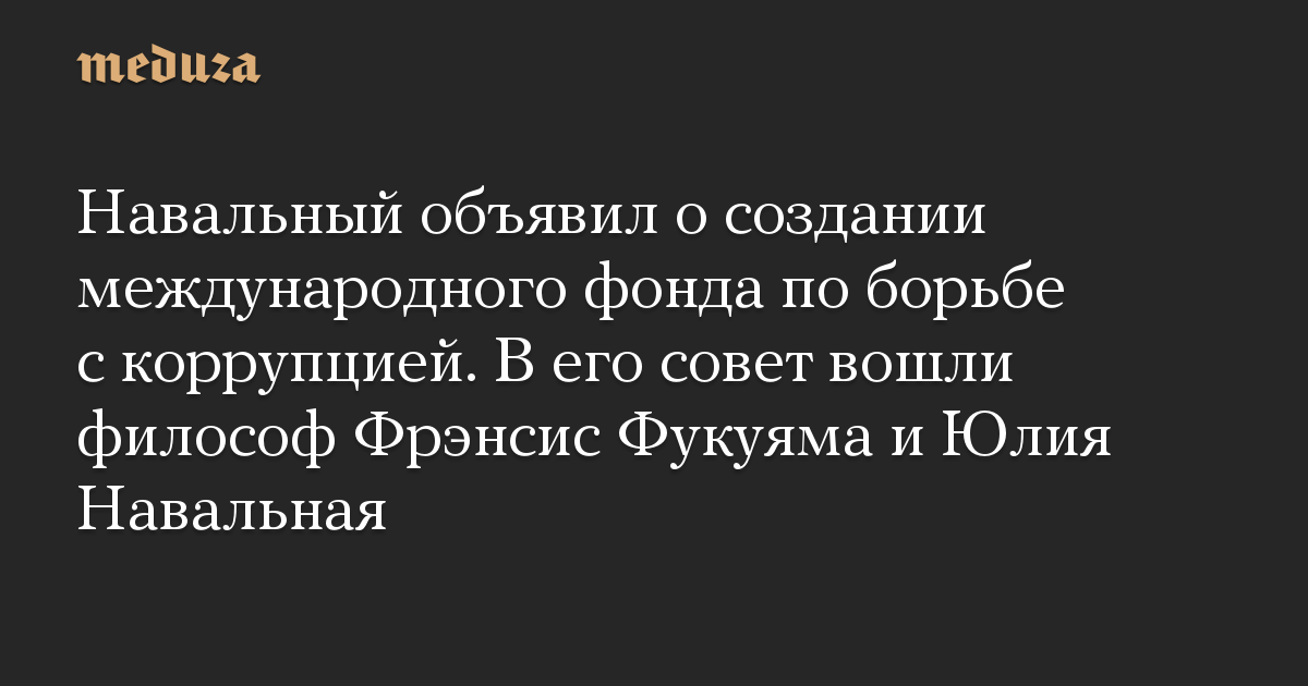 Навальный объявил о создании международного фонда по борьбе с коррупцией. В его совет вошли философ Фрэнсис Фукуяма и Юлия Навальная