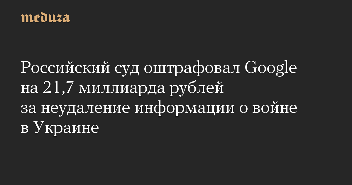 Российский суд оштрафовал Google на 21,7 миллиарда рублей за неудаление информации о войне в Украине