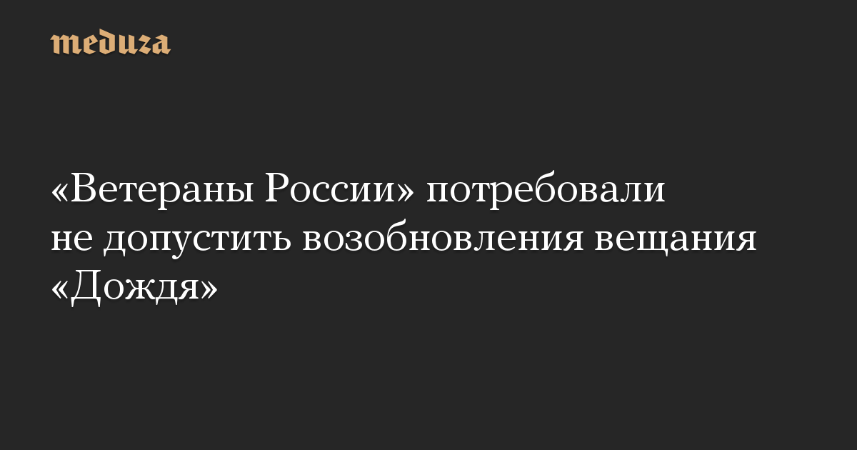 Общественное движение «Ветераны России» обратилось к главам Минцифры и Роскомнадзора с просьбой не допустить возобновления вещания телеканала «Дождь» в России и отслеживать его контент на всех кабельных телеканалах.