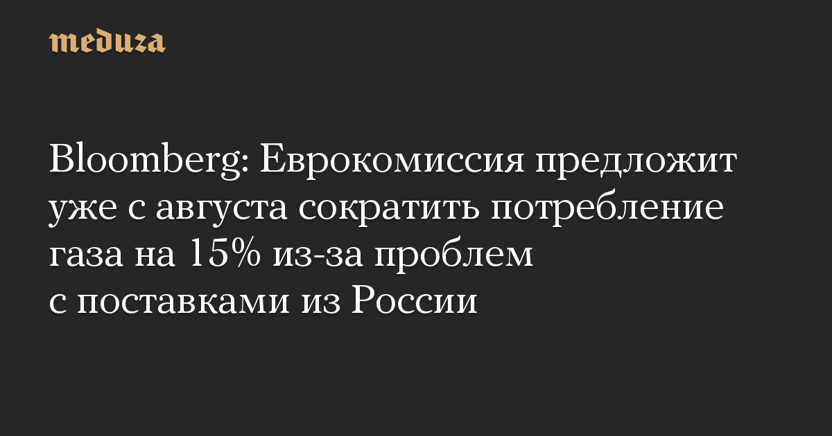 Bloomberg: Еврокомиссия предложит уже с августа сократить потребление газа на 15% из-за проблем с поставками из России