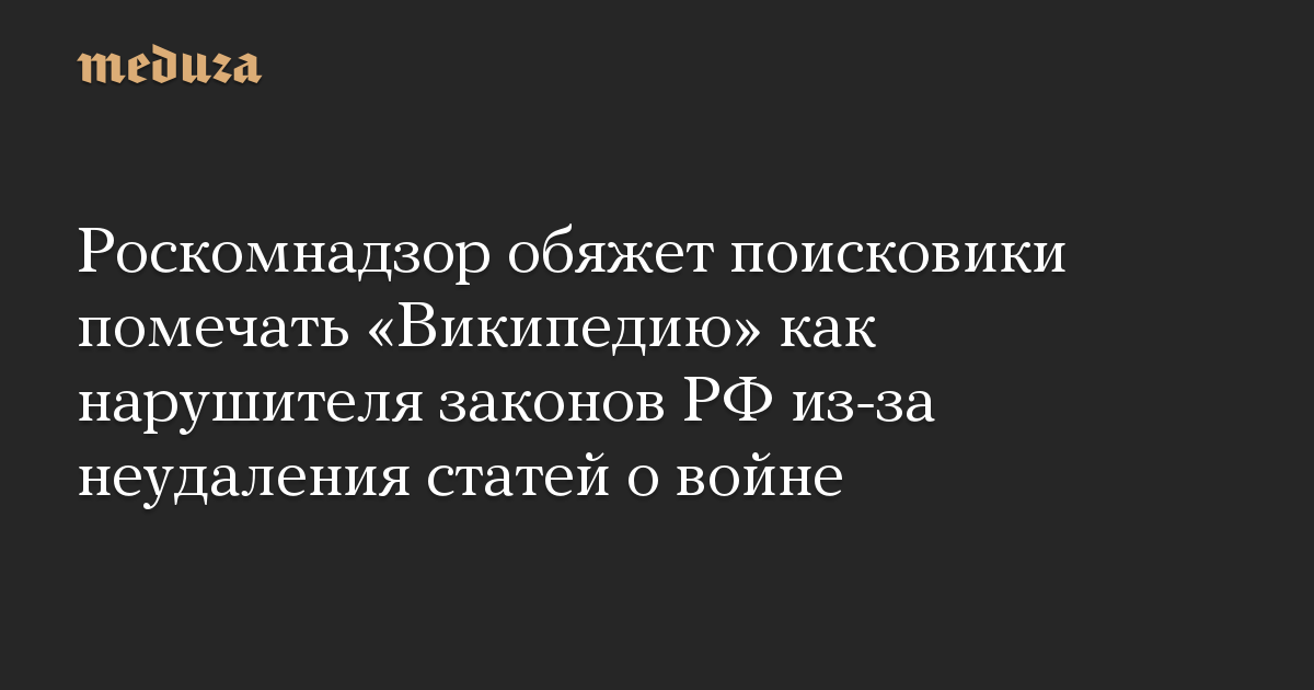 Роскомнадзор обяжет поисковики помечать «Википедию» как нарушителя законов РФ из-за неудаления статей о войне