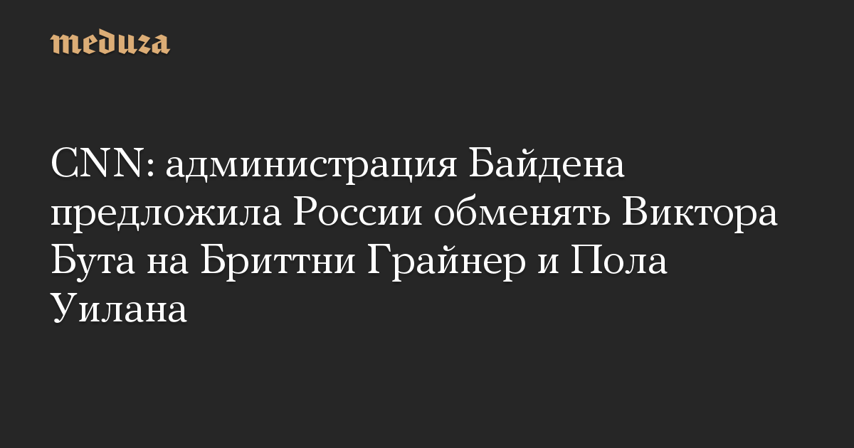 Администрация президента США Джо Байдена предложила России обменять россиянина Виктора Бута на американцев Бриттни Грайнер и Пола Уилана, сообщает телеканал CNN со ссылкой на источники.