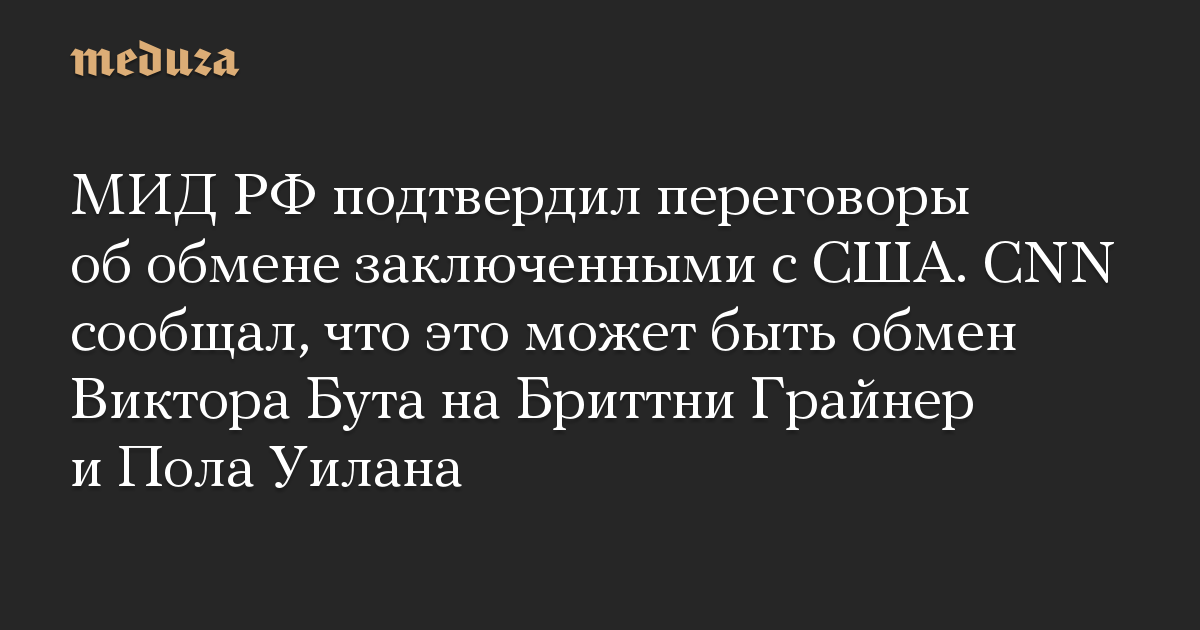 МИД РФ подтвердил переговоры об обмене заключенными с США. CNN сообщал, что это может быть обмен Виктора Бута на Бриттни Грайнер и Пола Уилана